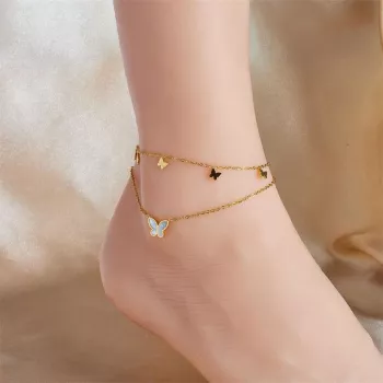 Chic Stainless Steel Double-Layer Butterfly Anklet