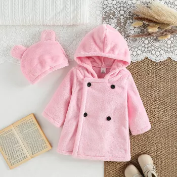 Cozy Hooded Fleece Winter Coat for Baby Girls with Matching Hat