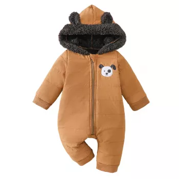 Cozy Winter Unisex Baby Romper with Bear Print and Matching Hat 1-24M