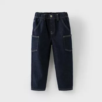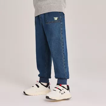 Winter Plush-Lined Boys’ Loose Denim Jeans with Elastic Waist