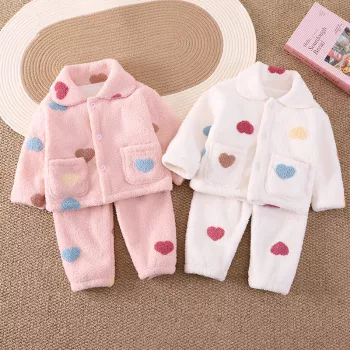 Cozy Winter Heart Print Kids Pajama Set for Toddlers 1-5Y
