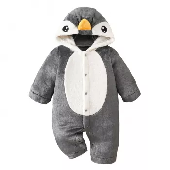 Baby Penguin Plush Snowsuit Footed Romper – Cozy Cartoon Infant Onesie