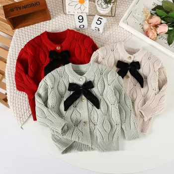 Girls Knit Cardigan & Skirt Set with Bowknot for Ages 2-7