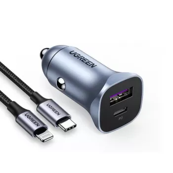 30W Dual Port Fast Car Charger USB-C & USB-A with PD & Quick Charge
