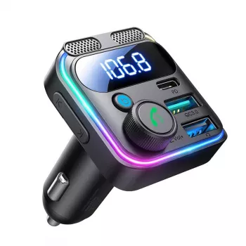 48W Bluetooth 5.3 Car FM Transmitter with Dual Mics & Fast Charging