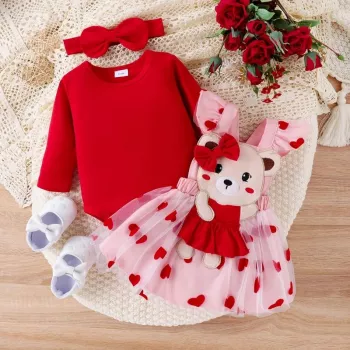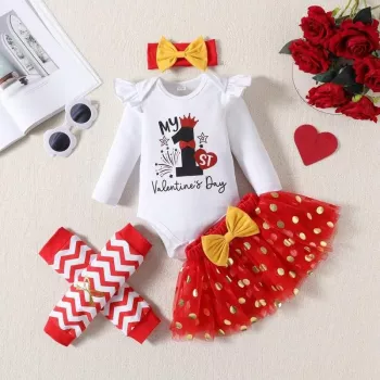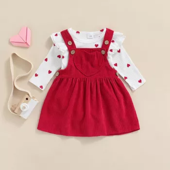 Heart-Themed Baby Girl Ruffled Long Sleeve Romper and Skirt Set