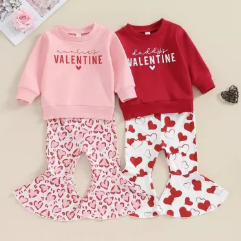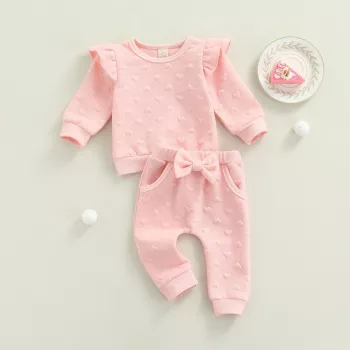 Charming Pink Heart Print Long Sleeve Baby Girl Outfit Set