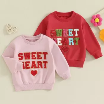 Toddler Girls Long Sleeve Valentine's Day Heart Embroidery Sweatshirt