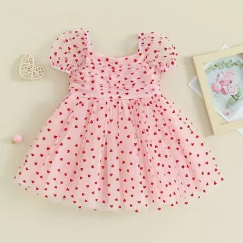 Charming Heart Print Baby Girl Romper Set with Bow Knot Headdress