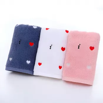 100% Cotton Embroidered Face Towel – Peach Heart Love Letters, 3 Colors