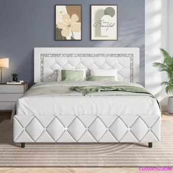 Modern Full Platform Bed Frame with Diamond Tufted Headboard