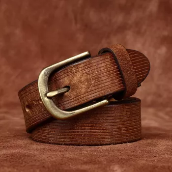 Men’s 1.5 Inch Genuine Leather Belt with Copper Pin Buckle – Retro Casual Style
