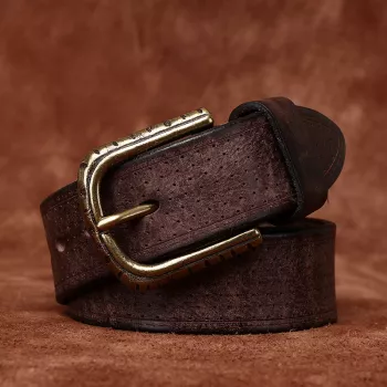 Men’s Genuine Leather Retro Belt with Solid Copper Buckle – 1.5 Inch Thick Luxury Strap