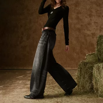 Winter Wide-Leg Cotton Pants with Lightning Detail