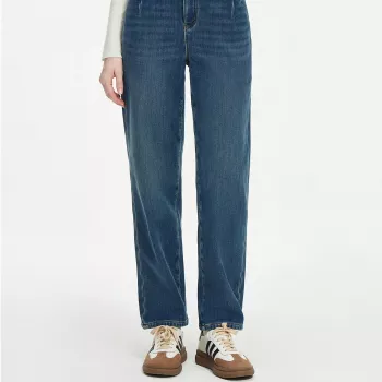Retro Diamond Washed Straight Leg Jeans – High Waist Winter Denim