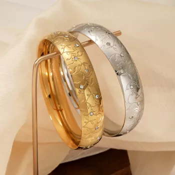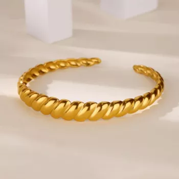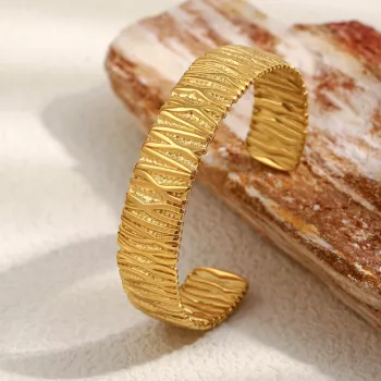 Gold Color Striped Stainless Steel Bangle - Aesthetic Jewelry for Women