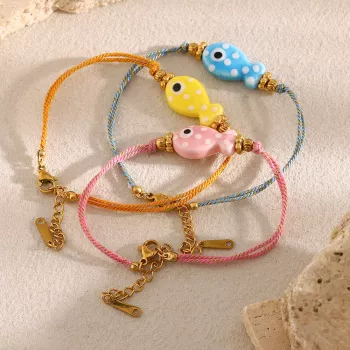 Colorful Ceramic Fish Bracelet - Waterproof Stainless Steel Jewelry