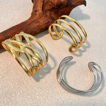 Stainless Steel Minimalist Geometric Cuff Bracelet – Multi-Layer Statement Bangle
