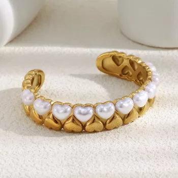 Heart Pearl Cuff Bracelet – 18K Gold Plated Stainless Steel