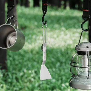 Titanium Folding Spatula with Locking Handle for Camping & Kitchen Cooking