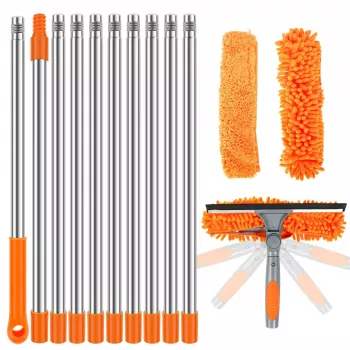 Window Squeegee Cleaner Kit with 13.78 FT Extension Pole - 2-in-1 Double-Sided Window Cleaning Tool