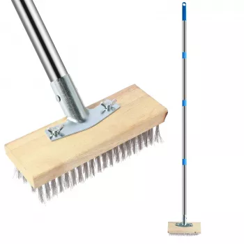 Stainless Steel Wire Floor Scrub Brush with Long Adjustable Handle for Outdoor Cleaning