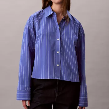 Calvin Klein Jeans Women's Stripe Cropped Boxy Button-Down Shirt