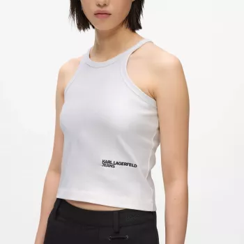Karl Lagerfeld Jeans Women's Silver Coated Ribbed Tank Top