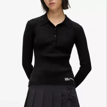 Karl Lagerfeld Jeans Women's Rib-Knit Long-Sleeved Polo Shirt - Black