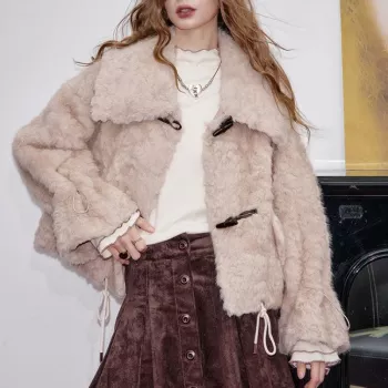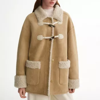 Women’s Faux Shearling Winter Coat with Horn Buttons
