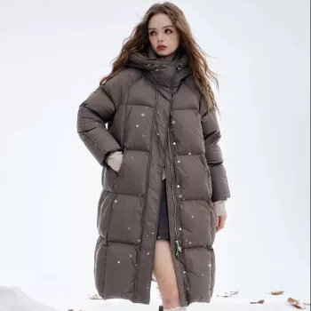 Women’s Long High Fill-Power Down Winter Coat with Zipper