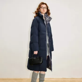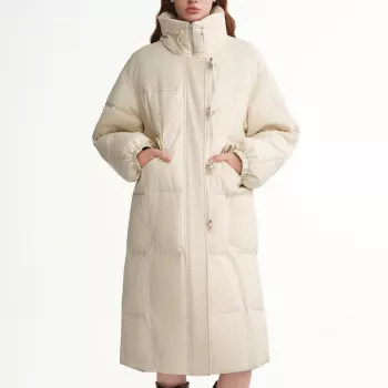Women’s Stand Collar White Duck Down Long Jacket