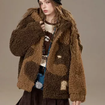 Y2K Ombre Plush Faux Leather Street Jacket for Women