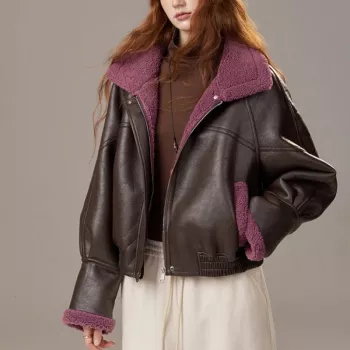 Women’s Cropped Faux Shearling Vegan Leather Winter Jacket