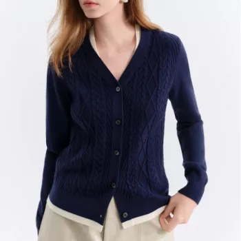 Winter V-Neck Cable-Knit Two-Piece Look Slim Cardigan Sweater