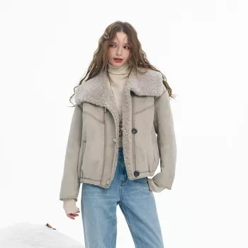 Oversized Shearling Collar Fleece-Lined Winter Workwear Coat