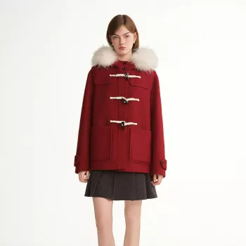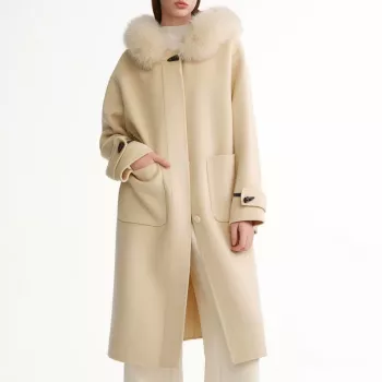 Plus Size Hooded Wool Overcoat with Fox Fur Collar