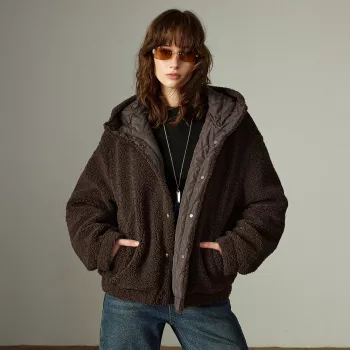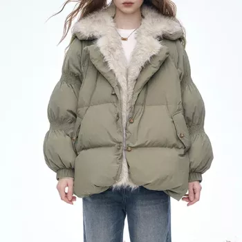 Women’s Winter Hooded Down Plush Jacket – Warm & Office Chic