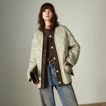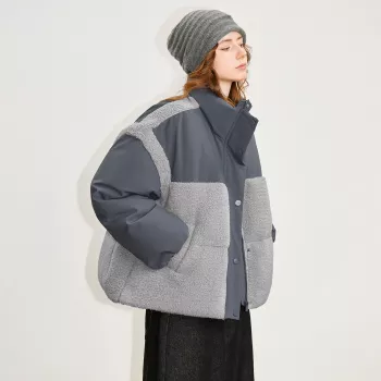 Lightweight Winter Down Jacket with Oxford Fabric and Fleece Panels