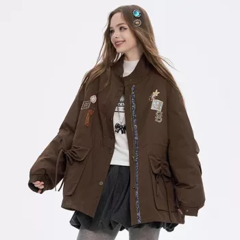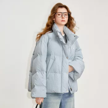 Women’s Winter Bubble Grid Down Puffer Jacket with Embroidery