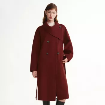 Plus-Size Scarf-Collar Wool-Blend Overcoat for Winter