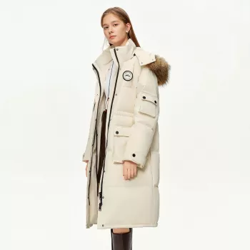 Women’s Long Winter Puffer Jacket with Faux Fur Collar and Zipper