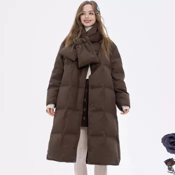 Women’s Long Casual Down Jacket with Knit Scarf – Winter Essential