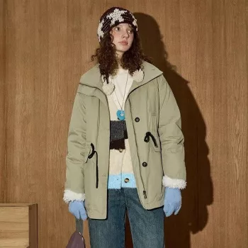Apricot Turtleneck Winter Parka with Zipper