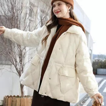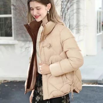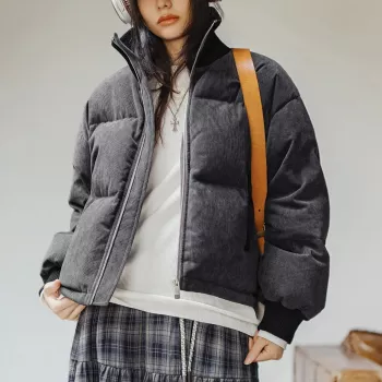 Women’s Corduroy Short Down Puffer Jacket with Stand Collar