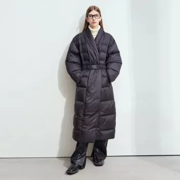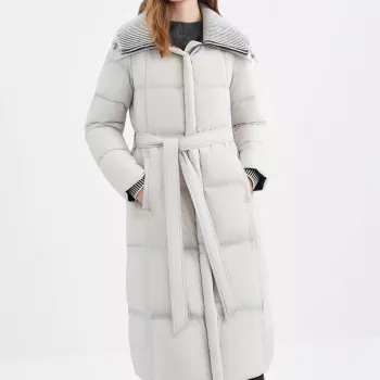 Women’s Long Knit Collar Down Coat with Structured Shoulders
