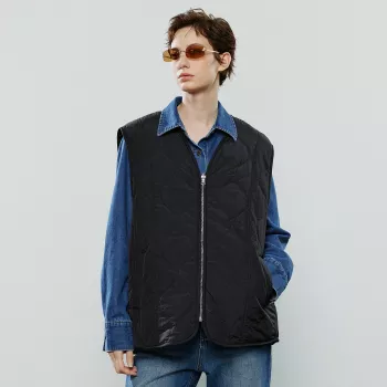 Women’s Vintage Black Padded Vest Winter Sleeveless Fleece Jacket