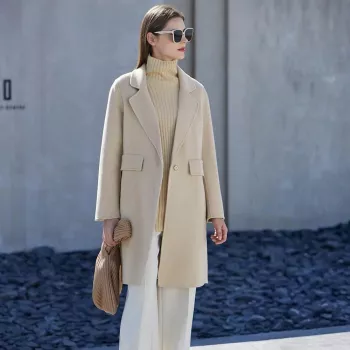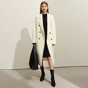 Women’s Winter Double-Breasted Wool-Mohair Long Coat with Belt