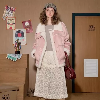 Women’s Plush Fleece Cropped Motorcycle Jacket