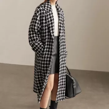 Women’s Long Plaid Wool Blend Winter Coat with Lapel and Pockets
